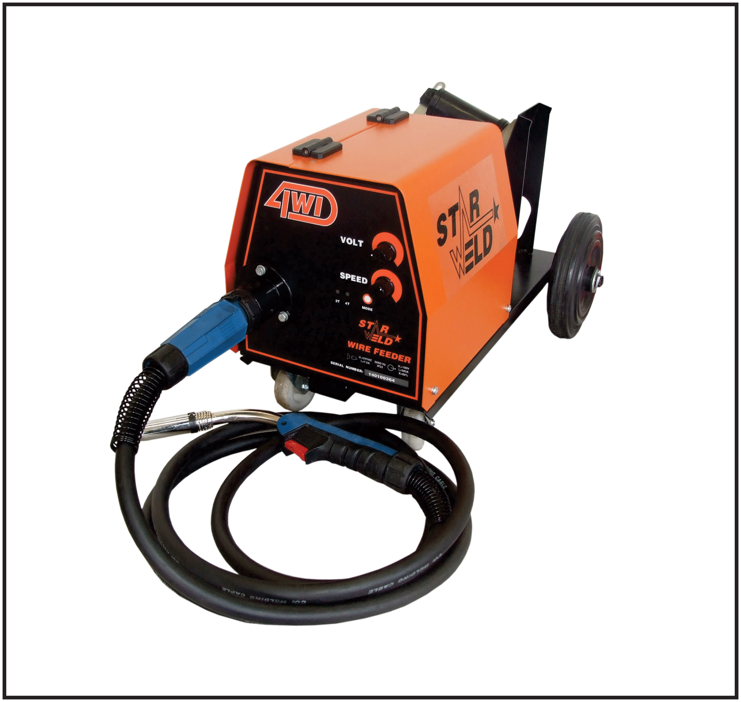 Our Starweld wirefeeders are 4 wheel drived. The input voltage is 24 VAC. The rated current is 500A and the rated duty is 60. We have a various range of wirefeeders namely: